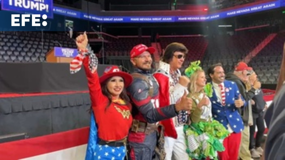 Henderson, Nevada (Estados Unidos), 1 nov (EFE/EPA).- El candidato republicano Donald Trump y la demócrata Kamala Harris, llevaron a cabo mítines en Arizona y Nevada, dos estados clave para las presidenciales del 5 de noviembre, en sus esfuerzos finales por movilizar al electorado.
