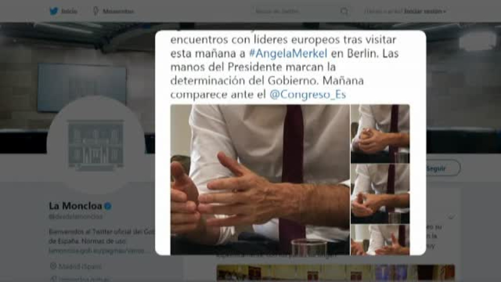 El presidente considera que "hay cosas que afinar" en la comunicación de Moncloa, y prefiere correr un "tupido velo" sobre el sorprendente mensaje de Moncloa ayer en las redes sociales. Las fotografías de sus manos , alabando el tesón del presidente Sánchez han sido aún más comentadas que el revuelo que su imagen , en avión y con gafas de sol levantaron este fin de semana.