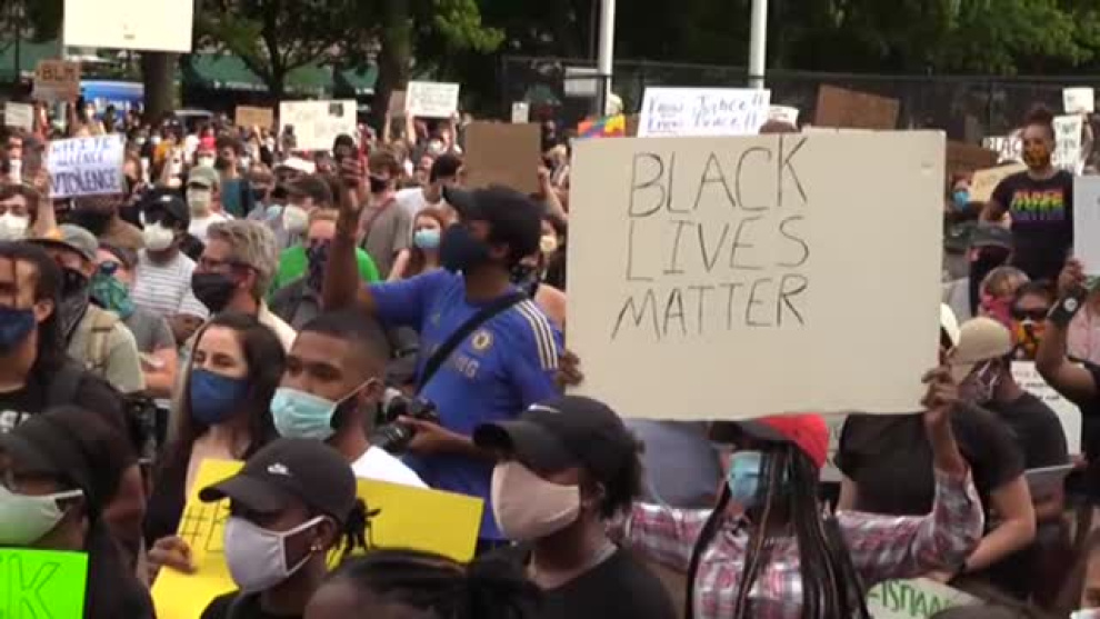 Las protestas por la otra pandemia, la de la brutalidad policial en Estados Unidos desde hace décadas, tal y como la califican colectivos antirracistas, se sigue extendiendo por las principales ciudades del país. Manifestaciones que exigen justicia por la muerte de George Floyd, en las que se recuerdan sus últimas palabras, "no puedo respirar". Un avance principalmente pacífico en sus primeras horas, pese a la tensión más que latente, y que ha acabado explotando en escenas de pura violencia. Como en Boston o en Los Ángeles, donde un agente en solitario es rodeado y golpeado por la multitud, durante más de un minuto, hasta que consiguen convencerle para escapar. En Atlanta el foco de la ira se centra en la sede de la televisión CNN. Destrozos múltiples, con policías desbordados, ante los que ha dicho basta su alcaldesa, que recuerda que ni cuando Luther King fue asesinado se le hizo esto a la ciudad. Los cordones policiales han rodeado el ayuntamiento de Los Ángeles y hasta la Casa Blanca en Washington. En Brooklyn, Nueva York, los agentes han improvisado escudos con sus bicicletas, mientras se han sucedido las detenciones en un autobús donde se habían refugiado decenas de manifestantes. Arrestos que también se han registrado en Milwaukee donde, además, se ha producido pillaje en comercios. Cuarto día de incendio en las calles de Estados Unidos que deja al menos dos muertos por disparos, un policía en Oakland y un joven en Detroit.
