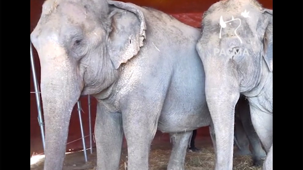 El Partido Animalista Pacma ha hecho públicas unas imágenes hasta ahora inéditas del estado en el que se encuentran las elefantas del circo Gottani que la semana pasada resultaron heridas en un accidente de tráfico cuando eran trasportadas a su próximo destino en Albacete.