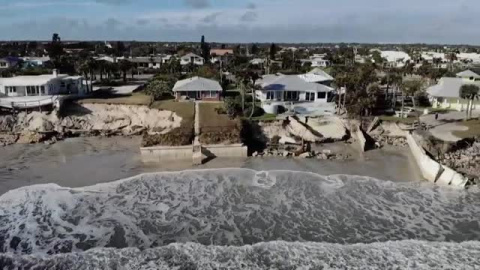 El huracán Nicole azotó Florida esta semana, antes de perder fuerza, golpeando con una combinación de fuertes lluvias y fuertes vientos que derribaron líneas eléctricas, inundaron casas y dejaron al menos tres muertos. Imágenes de dron muestras la destrucción que el huracán ha dejado a su paso.