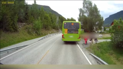 Un grupo de niños se baja del autobús escolar en mitad de la carretera. Uno de ellos se dispone a cruzar cuando un camión aparece frente a él. El conductor logra frenar a tiempo demostrando grandes reflejos y evitando de esta manera que la anécdota se convirtiera en tragedia.