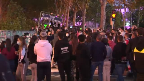 Esta tarde se ha organizado en Vallecas ante la sede de la Asamblea regional una nueva protesta contra las restricciones de la Comunidad de Madrid. Ha tenido lugar en el escenario donde ayer hubo fuertes cargas policiales para condenarlas y horas después de las nuevas medidas anunciadas esta mañana por el Gobierno regional de Isabel Díaz Ayuso.
