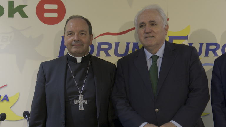 Imágenes del obispo de Vitoria, Juan Carlos Elizalde, en un desayuno informativo en Bilbao.