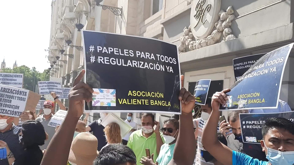 El movimiento #RegularizacionYa, apoyado por más de un millar de ONG y colectivos en defensa de las personas migrantes y antirracistas, se ha manifestado ante el Congreso para pedir una regularización "urgente, permanente y sin condiciones" de las personas que están en situación administrativa irregular. "España tiene una deuda pendiente con los migrantes que hemos estado en primera línea durante la pandemia", ha afirmado Seydou Diiop, portavoz de la campaña #RegularizaciónYa.