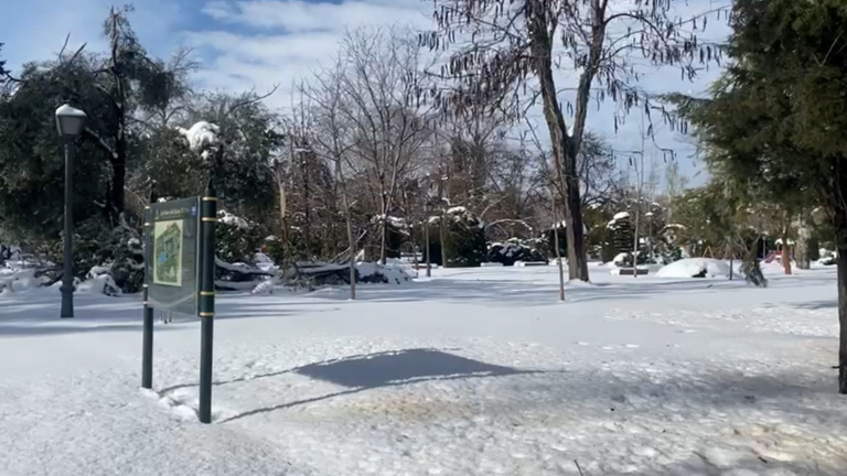 El Parque del Retiro continúa completamente nevado este domingo