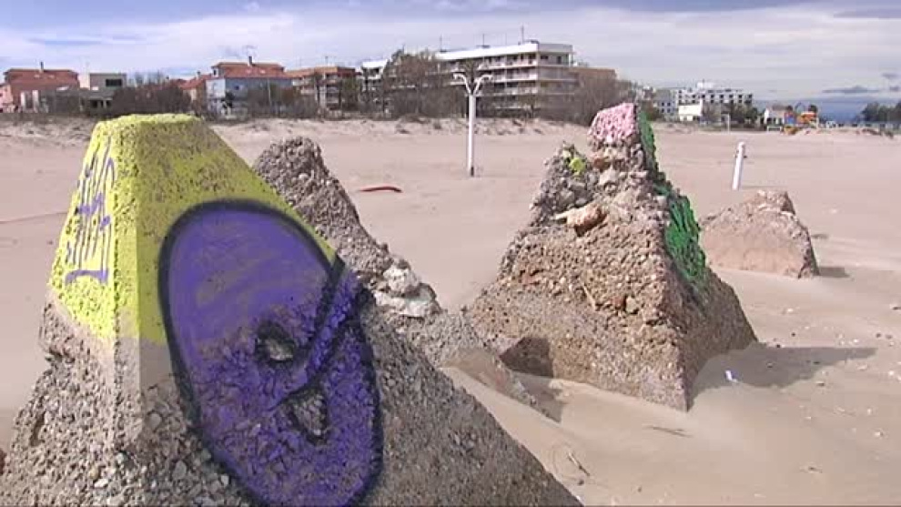 En Valencia los temporales de las últimas semanas han dejado al descubierto una imagen que no veíamos desde hace mucho tiempo. Noventa y seis pirámides de hormigón de unos dos metros de altura que estaban ocultas bajo la arena. Una curiosa imagen convertida en toda una atracción para los turistas que acuden a la playa del Perellonet (Valencia).