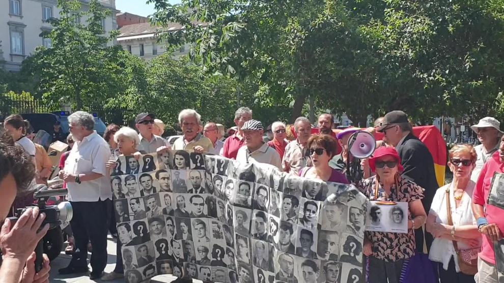 La plataforma 'Ni Valle ni Almudena' se ha concentrado este martes frente al Tribunal Supremo para pedir la exhumación de los restos de Franco del Valle de los Caídos y su traslado, previsto inicialmente para el próximo 10 de junio. Sin embargo, el Alto tribunal ha suspendido cautelarmente la exhumación.
