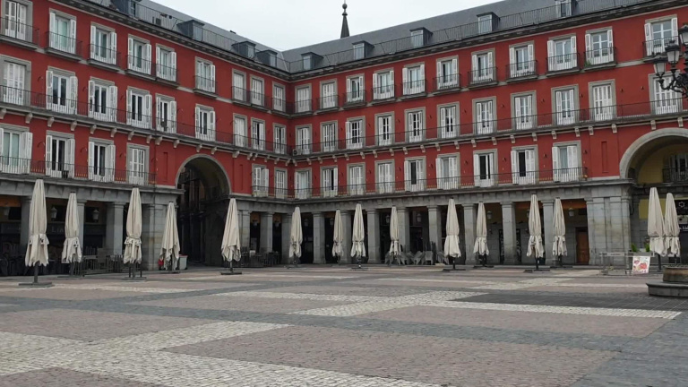 La Plaza Mayor de Madrid en confinamiento total