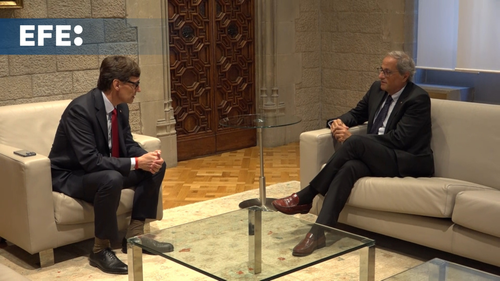 Barcelona, 26 sep (EFE).- El presidente de la Generalitat, Salvador Illa, se reúne este jueves con el expresidente Quim Torra en el Palau de la Generalitat.