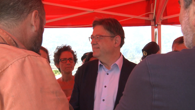 Imágenes del presidente de la Generalitat Valenciana, Ximo Puig, quien ha visitado el puesto de mando avanzado del incendio en el término municipal de Llutxent (Valencia).