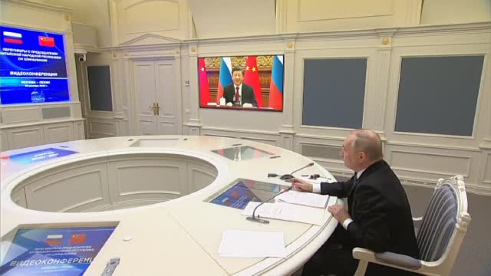 Vídeo AP-La Presse/Agencia Atlas: A pesar de la guerra de Ucrania, el presidente ruso, Vladimir Putin, y el presidente chino, Xi Jinping, han escenificado hoy su buena sintonía. Ambos han destacado el buen momento que atraviesan sus relaciones, hasta el punto de anunciar una visita de estado del presidente chino a Rusia en primavera. Putin espera, además, ampliar la cooperación militar con Pekín en un momento especialmente delicado en el campo de batalla, donde Rusia pierde un gran número de militares cada día.