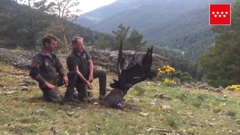 Imágenes de agentes forestales de la Comunidad de Madrid que han colaborado con SEO BirdLife, en el radiomarcaje de este un ejemplar adulto de buitre negro.