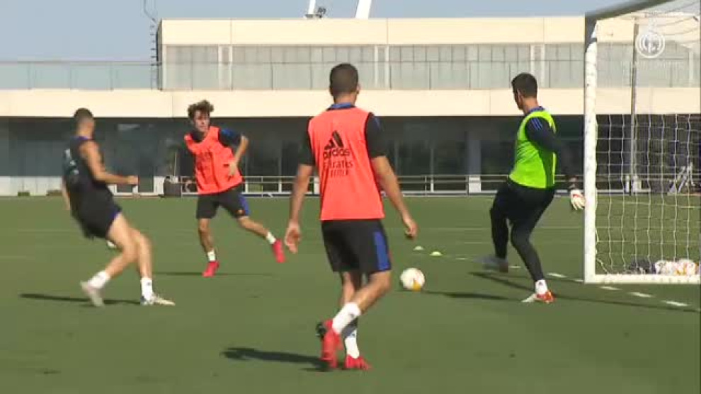 El Real Madrid continúa preparando el partido de este próximo domingo frente al Levante. La sesión de este miércoles arrancó con los jugadores en el gimnasio y los porteros realizando trabajo específico sobre el césped. Después salieron al campo para realizar ejercicios tácticos. Benzema, Asensio y Vallejo hicieron una sesión especial de pruebas físicas de resistencia, mientras que Mariano se ejercitó en solitario. Por su parte, Kroos, Mendy, Marcelo y Ceballos continuaron con su trabajo de recuperación.