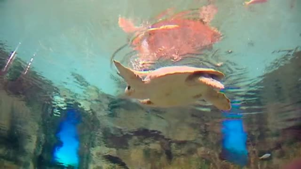 Potera es una tortuga boba subadulta de unos 30kg. La encontró un pescador al sur de gran canaria con varios anzuelos en la boca. Ahora, se encuentra en la última fase de rehabilitación en este acuario de las palmas de gran canaria donde recibe todo tipo de cuidados. La observan día y noche para ver su evolución, lleva una alimentación controlada con suplementos vitamínicos y le hacen analíticas de sangre para comprobar su mejoría. La estimulan con corrientes como las que puede encontrar en el mar, y además tiene entretenimiento. Cuando esté lista la soltarán en el mar como hicieron hace unos días con esta otra tortuga caretta. A ella la encontraron enredada en plástico y tuvieron que amputarle una aleta. Tras unos meses en el acuario ya disfruta en las aguas de la isla de El hierro. Además se llevará a cabo un proyecto con el que podrán controlar la vida ya en libertad de estos animales. Como ellas, a partir de ahora muchas otras tortugas podrán recuperarse y prepararse para su vida en el mar, en este acuario que pretende ser un hotel marino de 5 estrellas.