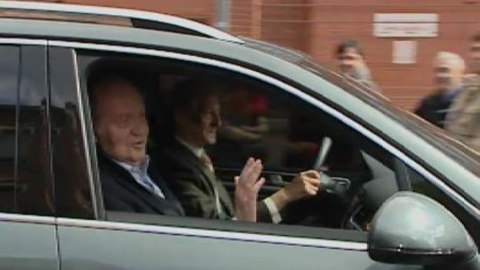 SM el rey ha abandonado esta mañana la clínica La Milagrosa donde permanecía ingresado desde el pasado domingo tras someterse a una intervención de dos hernias discales.Don Juan Carlos ha saludado afablemente desde el vehículo en el que hace seis días también llegó a la clínica y se ha limitado a agradecer la paciencia y el trabajo de la prensa, a pesar de la lluvia que ha caído durante toda la semana sobre la capital.