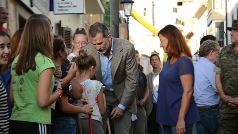 Imágenes de los Reyes, Felipe VI y Letizia durante su visita al municipio mallorquín de Sant Llorenç des Cardassar, afectado por graves inundaciones el pasado martes.