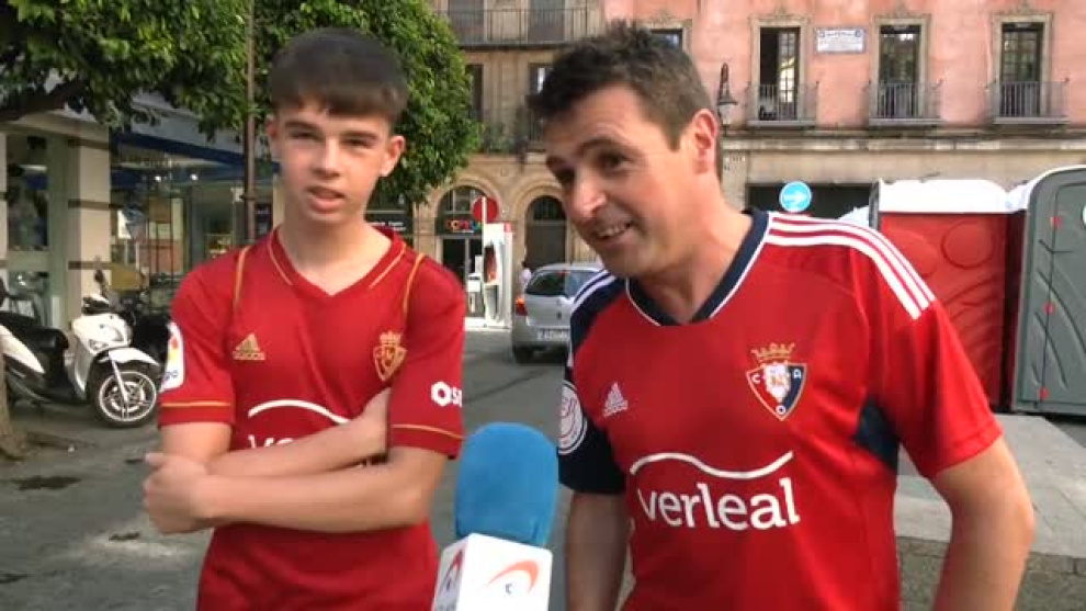 Día de muchos nervios para los aficionados de Osasuna y los seguidores del Real Madrid. Muchos han viajado hasta Sevilla para seguir de cerca el devenir de su equipo en la final de la Copa del Rey que se celebra este sábado en el estadio de La Cartuja. Algunos se conforman con ganar por la mínima, pero los más emocionantes esperan una victoria contundente de los suyos. Eso sí, rojillos y merengues coinciden en que estar aquí es ya todo un triunfo y auguran un partido muy ajustado.