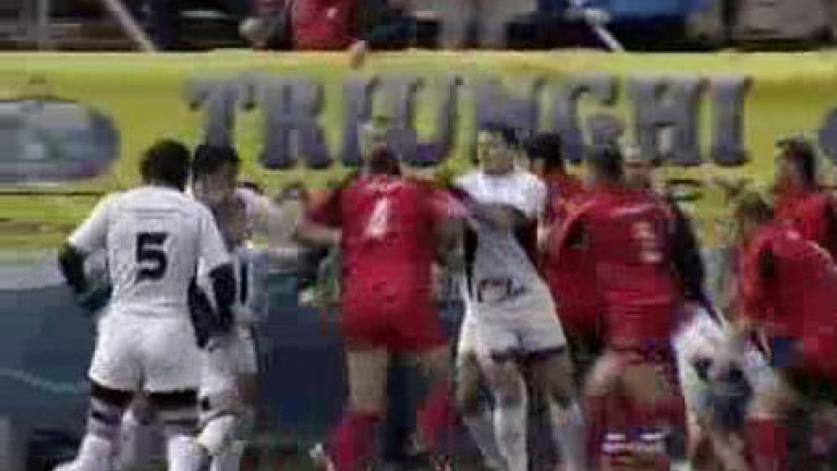 Batalla campal en un partido de la liga rumana de rugby entrel os jugadores del Dinamo de Bucarest y los del Farul Constanta. La violencia con la que se emplean es tan brutal que nadie se atreve a separarlos.