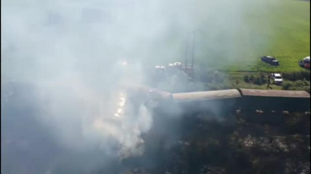 vagones quemados, todavía humeantes, víctima de un ataque incendiario. Un sabotaje del que aún nadie se ha hecho responsable, pero que apunta al conflicto entre las comunidades mapuches y el gobierno chileno. PRESIDENTE DE CHILE, SEBASTIAN PIÑERA "Somos plenamente conscientes, preocupados y ocupados por la grave perturbación de la ciudadanía, la grave amenaza a la seguridad pública y las graves consecuencias para la ciudadanía que provocan los ataques violentos cometidos por estas bandas del crimen organizado, (que están) vinculadas al narcotráfico, terrorismo y robo de madera ". Los saboteadores cortaon los pernos de sujeción de la vía férrea y cuando descarrilló el tren, cargado de celulosa, le prendieron fuego. El grupo indígena mapuche en la Araucanía exige al gobierno la devolución de tierras ancestrales. Y en los últimos años han reivindicado otros ataques a la red de transporte. Los dos maquinistas pudieron ser rescatados con vida.