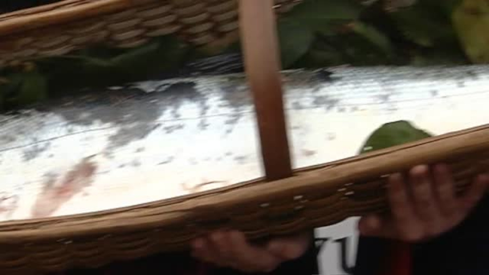 Un salmón de más de siete kilos, el "Campanu" pescado en el Sella