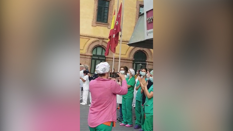 Sanitarios aplauden en el Gregorio Marañón