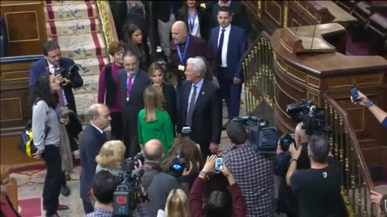 El popular actor ha llegado al hemiciclo acompañado de la presidenta del Congreso, Ana Pastor, quien le ha enseñado el lugar que ocupan los diputados.