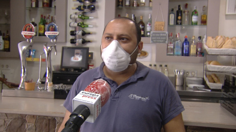 Uno de los propietarios del bar El Manantial en Sevilla, Juan Marcelo Cabral, explica el objetivo de los nombres de sus nievas tapas. "La idea es llamar la atención a la gente y con las tapas nuevas que hemos sacado que la gente tenga un poquito de alegría y le pierda miedo al coronavirus" asegura.