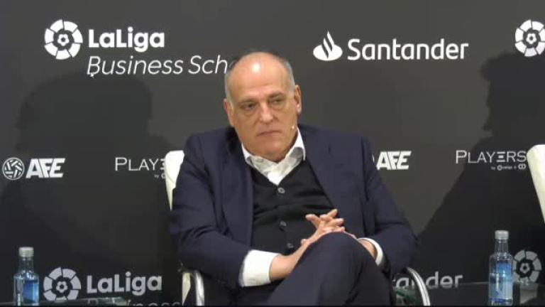 LaLiga ha presentado este lunes en Madrid la segunda edición del programa educativo Global Players. Javier Tebas ha atendido a los medios de comunicación para analizar la actualidad futbolística. El presidente de LaLiga ha hablado, entre otros temas, sobre la Superliga y la sentencia que debe dictar próximamente el Tribunal de Justicia de la Unión Europea. "En 2025 no habrá Superliga, diga lo que diga la sentencia. No se crearán unos órganos en manos de los clubes más ricos", ha asegurado Tebas.