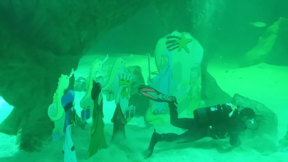 El Zoo Aquarium de Madrid instala su tradicional Belén de tiburones.