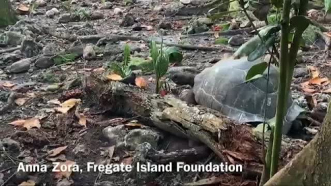 Una tortuga gigante ataca y se come a un pájaro en las Islas Seychelles