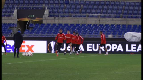 El Sevilla FC ha realizado el último entrenamiento antes del encuentro ante la Lazio en el Olímpico de Roma. Los de Machín disputarán en tierras italianas la ida de los dieciseisavos de final de la Europa League, pero no estarán solos, casi 2.000 aficionados sevillistas se han desplazado hasta la capital de Italia para animar a sus jugadores.