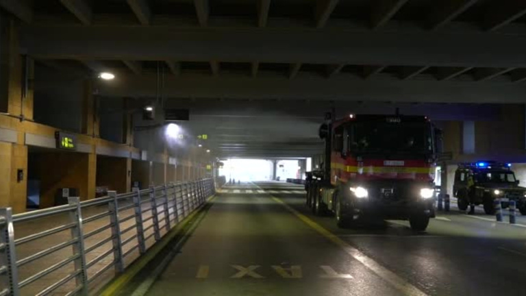 Imágenes de la UME desinfectando el aeropuerto de Sevilla.