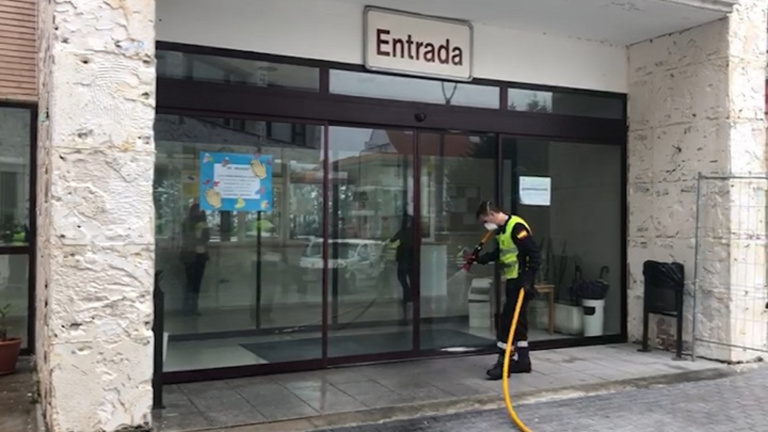 Imágenes de la UME desinfectando centros de salud en Cantabria.