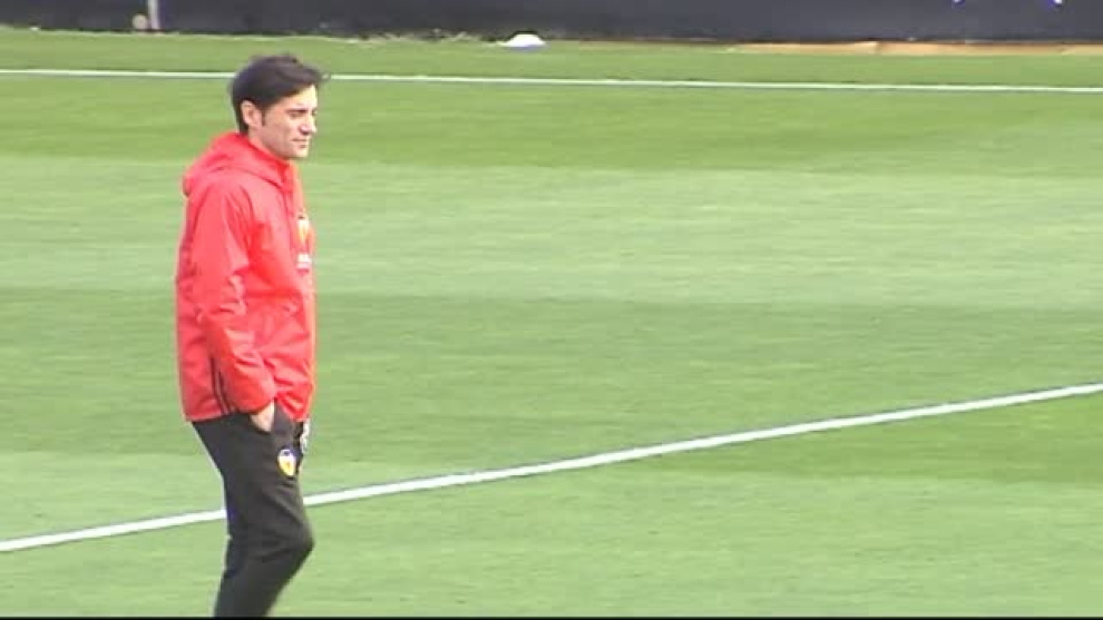 El Valencia CF ha realizado un entrenamiento en Paterna a puerta abierta. Con motivo del dái festivo en Valencia, muchos niños se han acercado al entrenamiento para ver a sus ídolos de cerca. Además de ver y disfrutar de la sesión preparatoria dirigida por Marcelino, los asistentes han recibido balones, bufandas y demás objetos de merchandising del club firmados por los jugadores. El Valencia CF se enfrentará el próximo domingo al Espanyol y, en función del resultado del derbi entre Real Madrid y Atlético de Madrid, podría acabar la jornada tercero superando a los blancos.