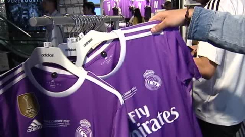 El Real Madrid saca a la venta las camisetas para la final de la Champions. Los aficionados preparan motores para la final y son muchos los que ya se han acercaban a los puntos de venta para hacerse con ella. Los blancos se vestirán de morado el próximo sábado.