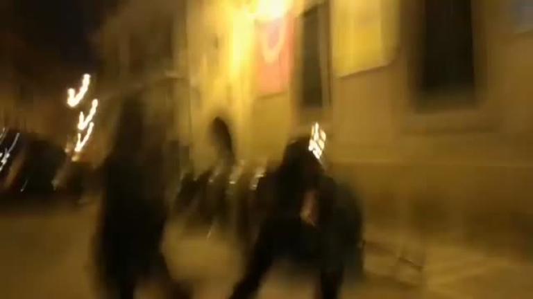 Los primeros antidisturbios llegan al palacio y los okupas dan la voz de alarma. Son las 4 y media de la mañana. Entre gritos comienza el desalojo. Primeras cargas y primeros momentos de tensión. Los jóvenes, encadenados a balcón o a bloques de hormigón dificultan su desalojo . Tenían preparado un amplio dispositivo de resistencia. Hay que acudir a una grúa. Simpatizantes de los okupas se reúnen en los alrededores del palacio. Pero el edificio está casi vacío. Se intenta acordonar la zona. Llegan las cargas por las calles de Pamplona. Más tensión entre antidisturbios y okupas.y nuevas carreras. El edificio llevaba 11 meses ocupado. En total hay 22 identificados, 4 de ellos menores de edad. Con la zona precintada. Los jóvenes continúan sus protestas.se desplazan a otros lugares de pamplona. Se manifiestan frente a las instituciones por el desalojo del palacio.