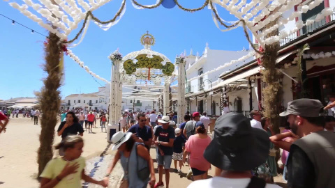 La Virgen del Rocío ha salido de su ermita para recorrer las calles de la aldea almonteña horas antes de emprender su traslado hasta la Iglesia Parroquial Nuestra Señora de la Asunción de Almonte (Huelva), evento que ocurre cada siete años y que en esta ocasión tiene un carácter especial al coincidir con la conmemoración del centenario de la coronación canónica de la Virgen del Rocío y la concesión de Año Jubilar Mariano.
