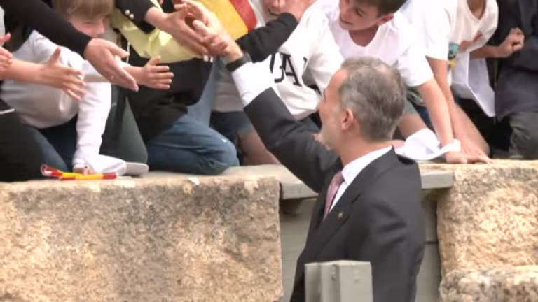Haciendo el paseíllo por el callejón de la impresionante plaza de toros de Ronda. Así hemos visto hoy al rey Felipe VI, recibiendo el calor de la gente, sin pasar por alto ni un sólo saludo y hablando en su reunión con la maestranza de la búsqueda de la excelencia. Mantiene su agenda ajeno a las actividades de Don Juan Carlos. Once meses han pasado de su paso por Zarzuela, de una conversación de la que fuimos informados : amplia, sobre cuestiones familiares y distintos acontecimientos y sus consecuencias .
