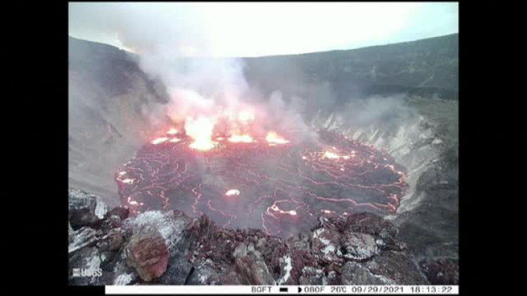 Atentos a esta imagen. Son las fisuras que se han formado en la base del cráter del volcán Kilauea. Por ellas están saliendo flujos de lava. Se activa de inmediato el código rojo. Una erupción peligrosa es, según el Servicio Geológico de Estados Unidos, "inminente, está en curso o se sospecha". La erupción, de momento, no se encuentra en un área con hogares y está contenida dentro del Parque Nacional de los Volcanes de Hawai. El Kilauea se suma así, con el de La Palma, en España, a la lista de volcanes en erupción.