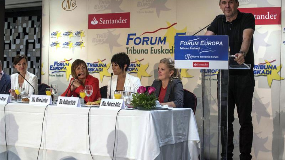 El incidente se ha producido durante la presentación por parte de Arnaldo Otegi de un desayuno informativo, en el Forum Europa-Tribuna Euskadi, de las tres cabezas de lista de EH Bildu a las elecciones del próximo día 25. En los primeros minutos de su intervención, se ha comenzado a escuchar una grabación en la que podía oírse insultos contra los españoles y frases como 'alde hemendik' (fuera de aquí).