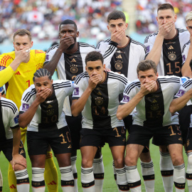 El once de Alemania se tapa la boca en protesta contra la FIFA por prohibir el uso del brazalete LGTBI+