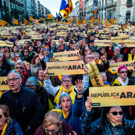 Un "muro humano" de cientos de miles de personas llena la Gran Via de Barcelona contra el juicio al 'procés'