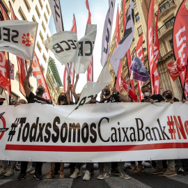 Miles de empleados de CaixaBank de toda España salen a la calle en una manifestación contra el ERE