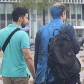 Activistes per l'habitatge ruixen amb pintura un hotel de Barcelona vinculat al congrés The District