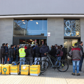Mig centenar de riders denuncien "l'asfíxia" que pateixen en una concentració a la seu de Glovo a Barcelona