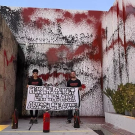 Activistas de Futuro Vegetal pintan la fachada de la casa de Leo Messi en Ibiza para protestar contra la crisis climática