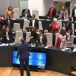 El concejal de Vox Ortega Smith tira una botella a la cara de un edil de Más Madrid en el Pleno