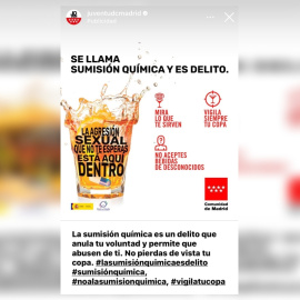 Una campaña de la Comunidad de Madrid agita el terror sexual sobre la sumisión química poniendo el foco en las víctimas