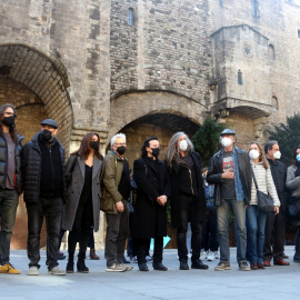 Centenars de persones omplen la plaça de la Catedral per protestar contra el desallotjament de la Casa Buenos Aires